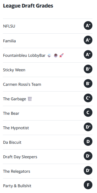 The 2025 draft took place on Friday, August 22nd in Kansas City, MIssouri. 2025 marked the first time the draft took place in Missouri, making it the 5th state to host the draft. Sweets took home Best Draft, while Reichert took home a league leading 4 Bears players.
