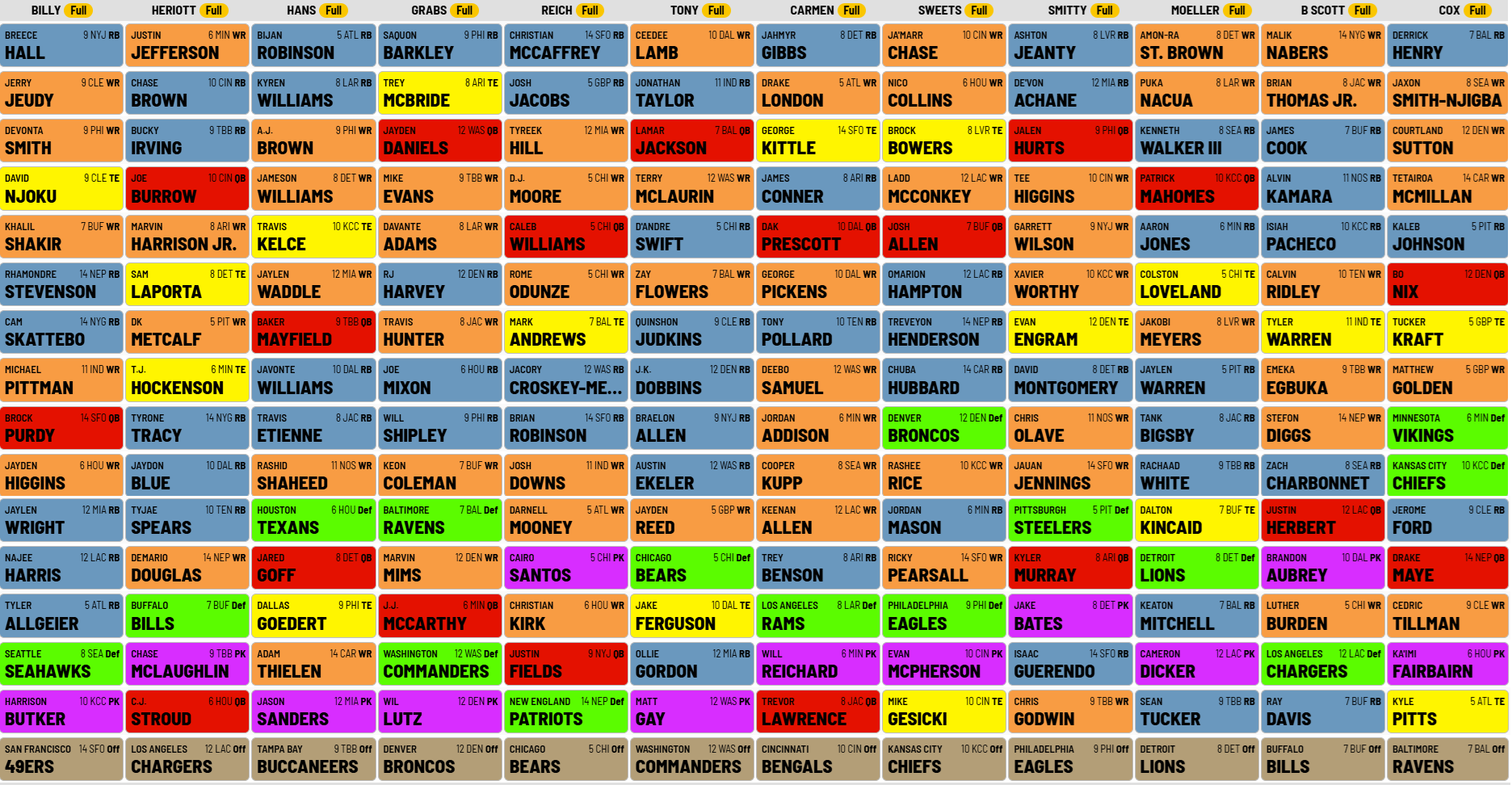 Draft Board - By Rosters